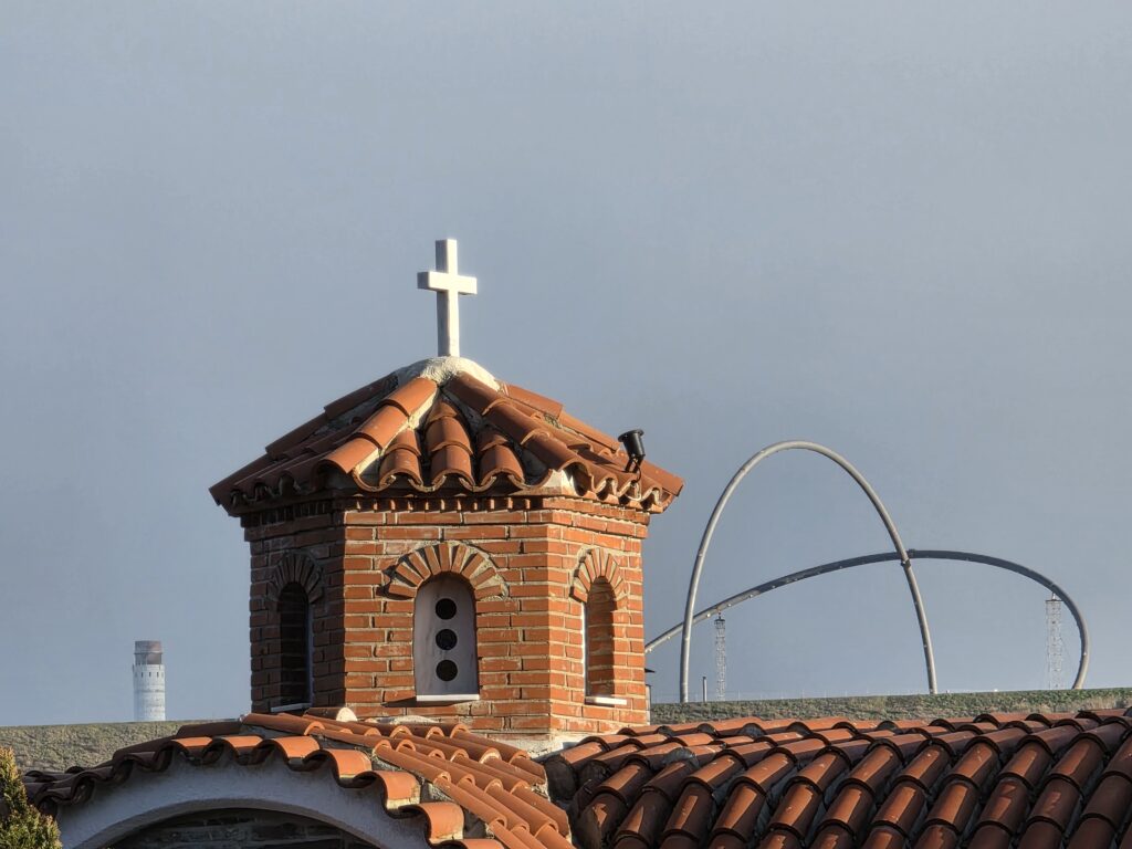 Als ich für den nächsten Podcast in Herten vor Ort war und fotografisch recherchierte, kam ich zufällig an einer Kirche vorbei, die sofort ins Auge fiel und auch anders war, als die anderen, die man so üblicherweise kennt. Ich war neugierig. Also parkte ich schnell und schaute mir das etwas genauer an. Und entdeckte nicht nur einen Standort einer anderen Glaubensrichtung, sondern eben auch die Einwanderergeschichte der Griechen, die das Ruhrgebiet ebenso prägten und noch heute prägen, nicht nur mit Taxiteller und Ruhrpott-Sirtaki.