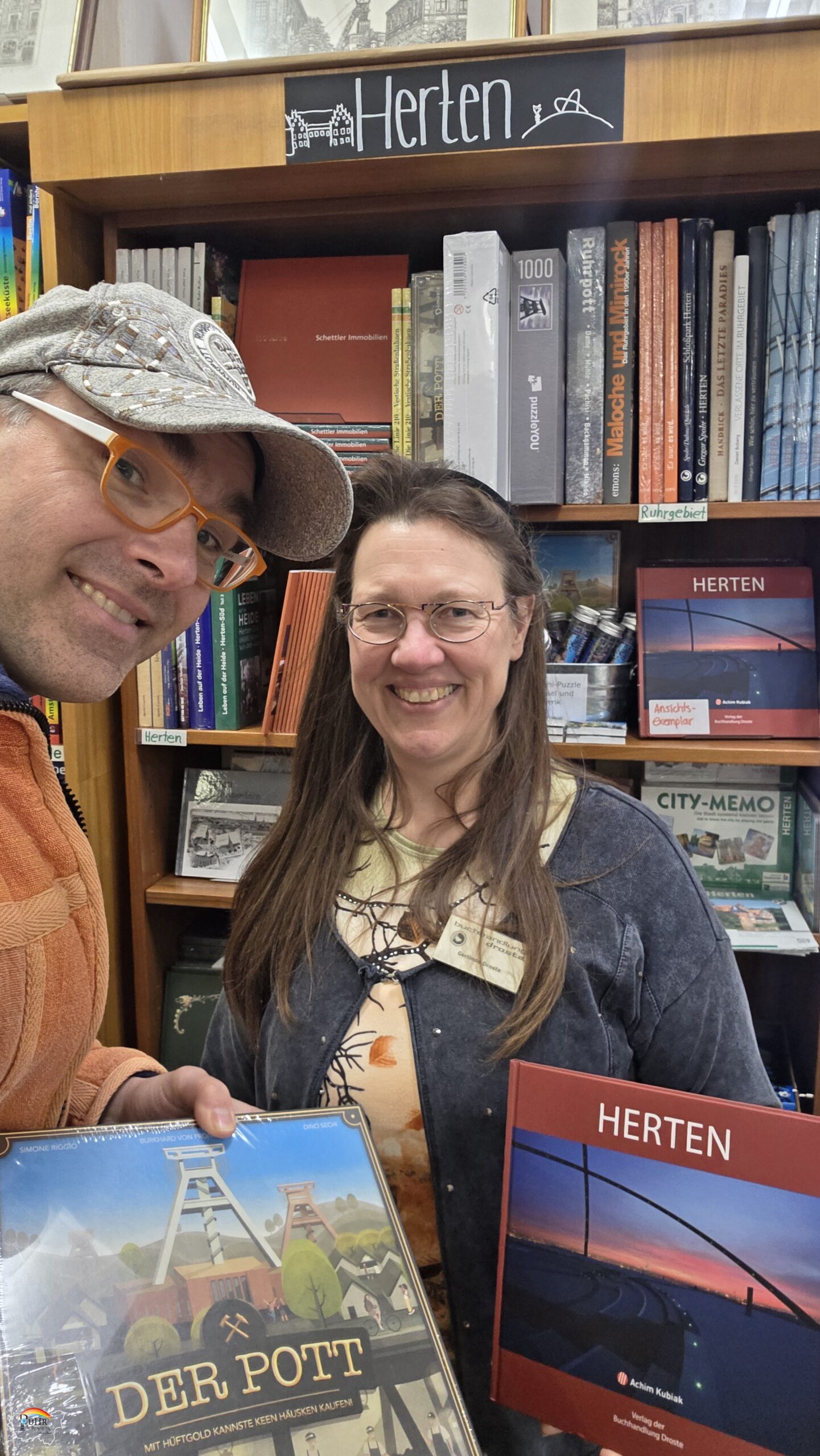 Das Spiel ‚Der Pott‘ vom Demoela Verlag ist auch an Bord. (Wo ich bisken mitgewirkt hatte. Gibt ja einen Podcast drüber) Ich hab mich mit ein paar Büchern über Herten eingedeckt. Auch einen schönen Bildband über Herten hab ich gefunden.