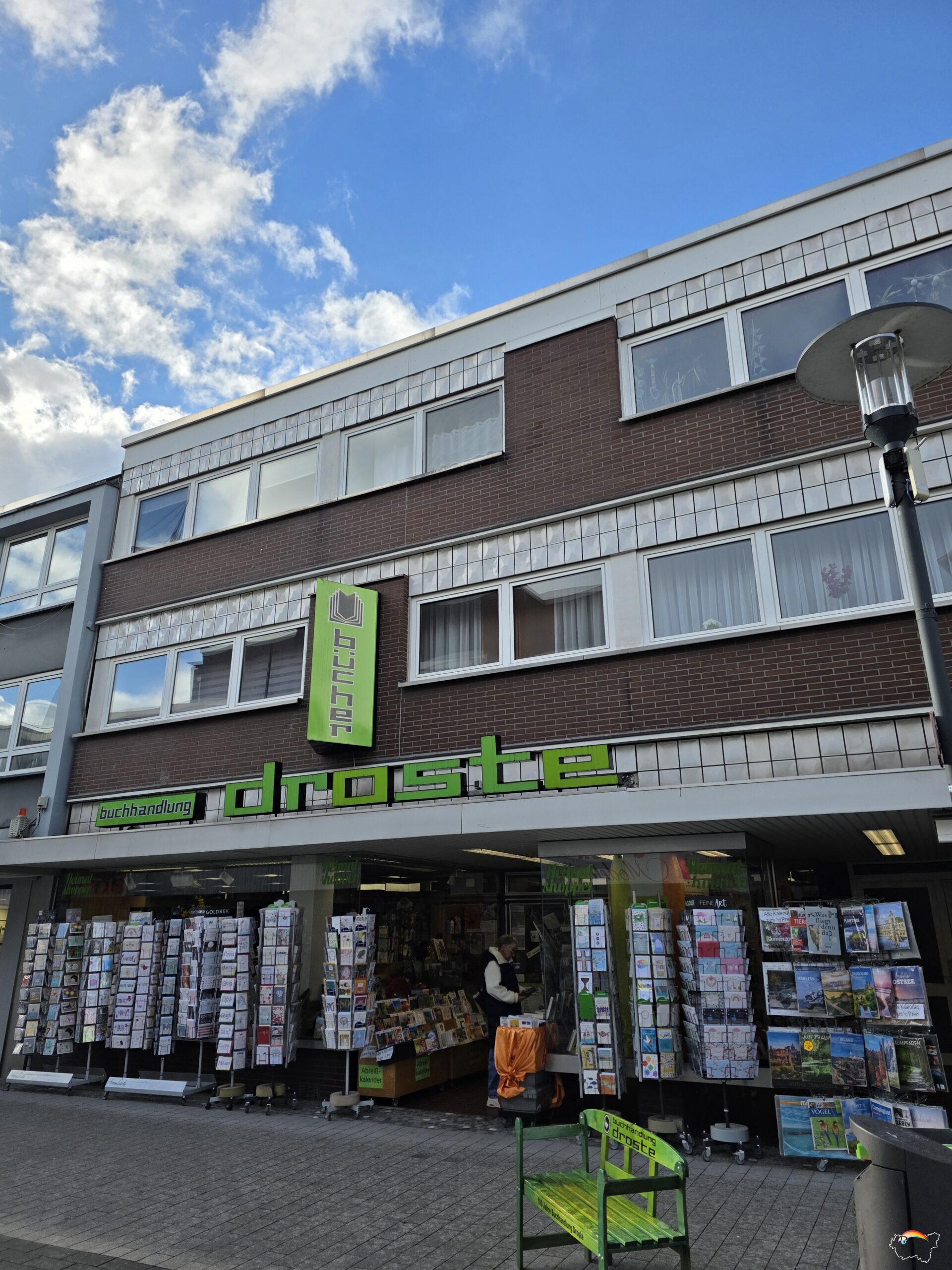 Heute spontaner Abstecher für den Podcast über Herten im Ort gemacht und die älteste Buchhandlung vor Ort ‚Droste‘ entdeckt. Nur ist sie nicht in einem alten Haus von 1910 mit knarzenden Türen und quitschenden Parkettboden, sondern in einem Haus aus den 1950er Jahren.