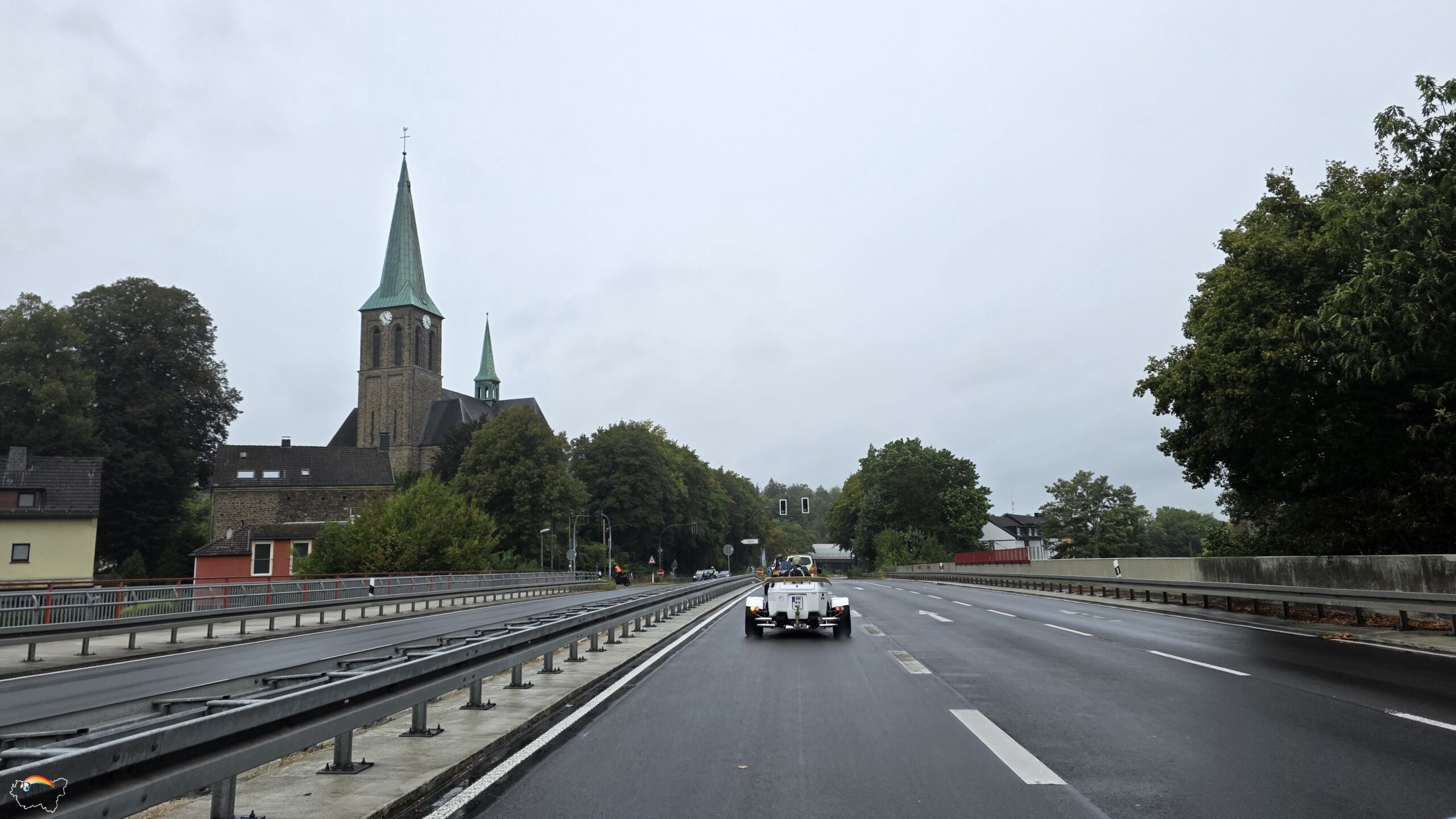 Durch Mülheim an der Ruhr bretterten wir auch kurz durch, um zwei Mal die Ruhrbrücke zu unterqueren, was schon grandios war wegen ihrer Höhe. Ein einmaliges Panorama, das ich mit dem Smartphone festgehalten habe.