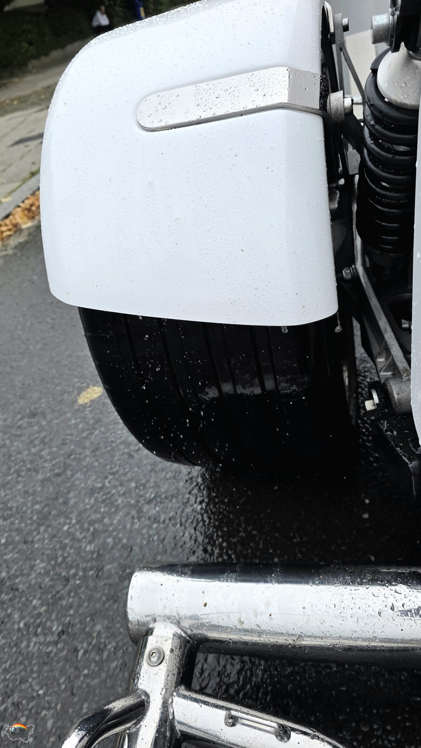 Genauso wie bei einer Aufnahme mein Tetrapak mit Wasser für unterwegs in der Kurve aus dem Sozius geschleudert wurde. Schicksal dumm gelaufen. Passiert auf einem offenen Motorrad schon mal.