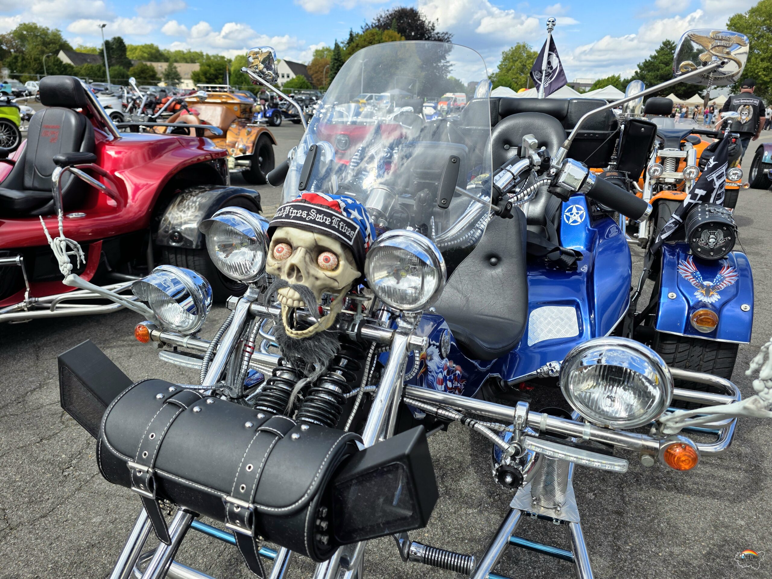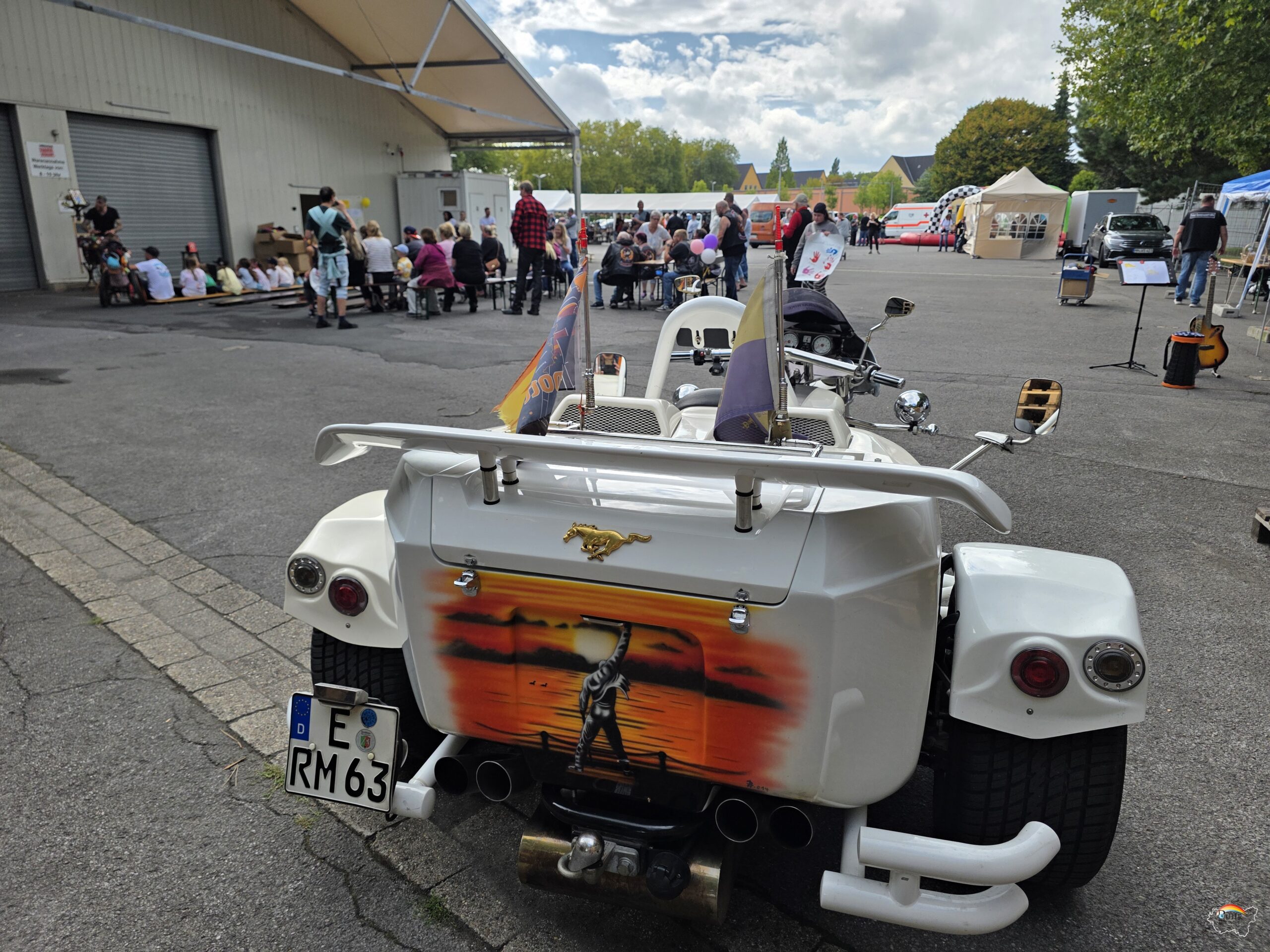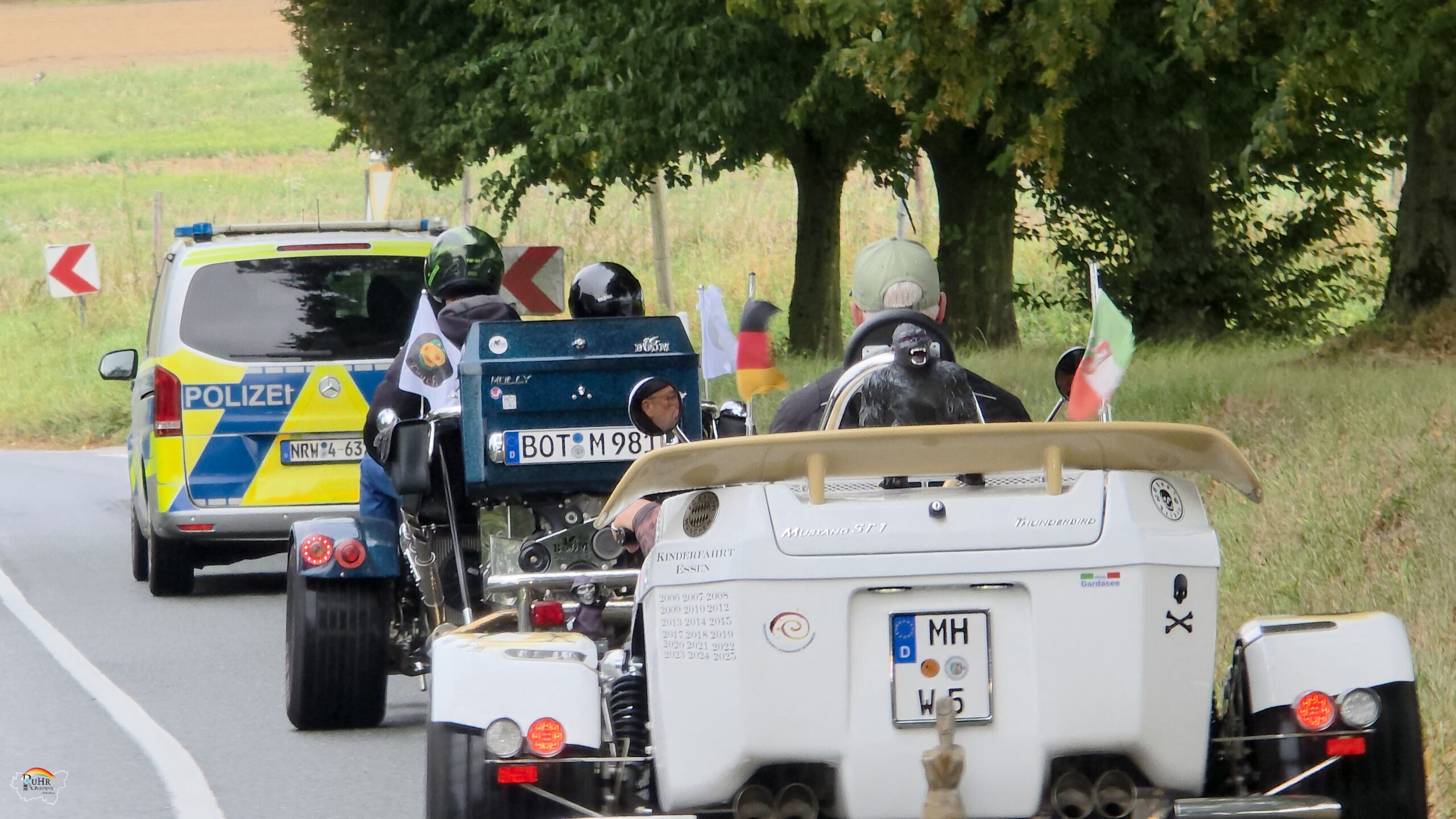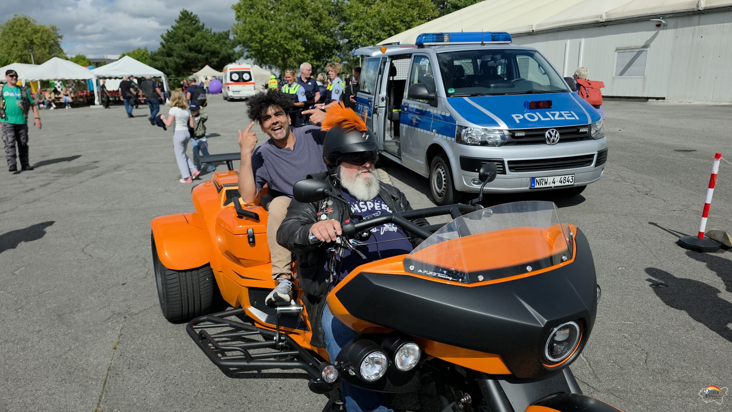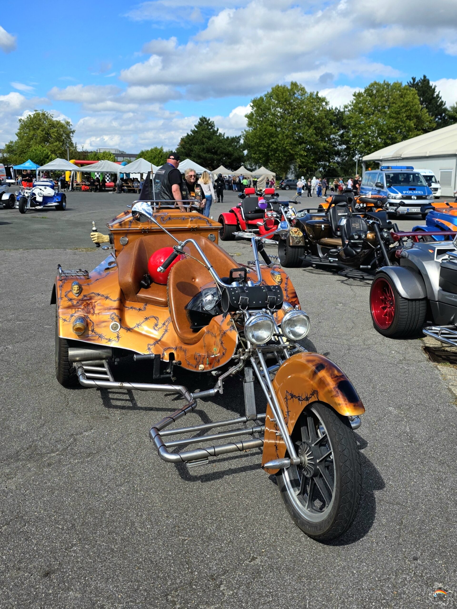 Jedes Jahr wird dieser einzigartige Tag von hilfsbereiten Trikern, Motorradfahrern und der Polizei gemeinsam gestaltet. Der Triker – Konvoi mit den Kindern auf dem Sozius wird von ausgesuchten Motorradfahrern begleitet und der Polizei Essen mit dem neuen Schirmherrn, Polizeipräsident Andreas Stüve, auf dem ersten Trike vorneweg. Er verteilte auf dem Gelände von Medion in Essen jedem ankommendem Kind eine schöne weiche Decke mit einem Polizeiauto drauf und ein Gutschein für ein Eis an diesem 30 Grad heißen Tag des 1. September 2024. Losgefahren sind sie vom Axel Springer Verlagsgelände in Essen durch den Süden der Stadt und einem Teil von Mülheim bis zum Medion Fabrikverkauf-Gelände. Am Nachmittag ging es über eine andere Route an Steele vorbei zurück zum Verlagsgelände.