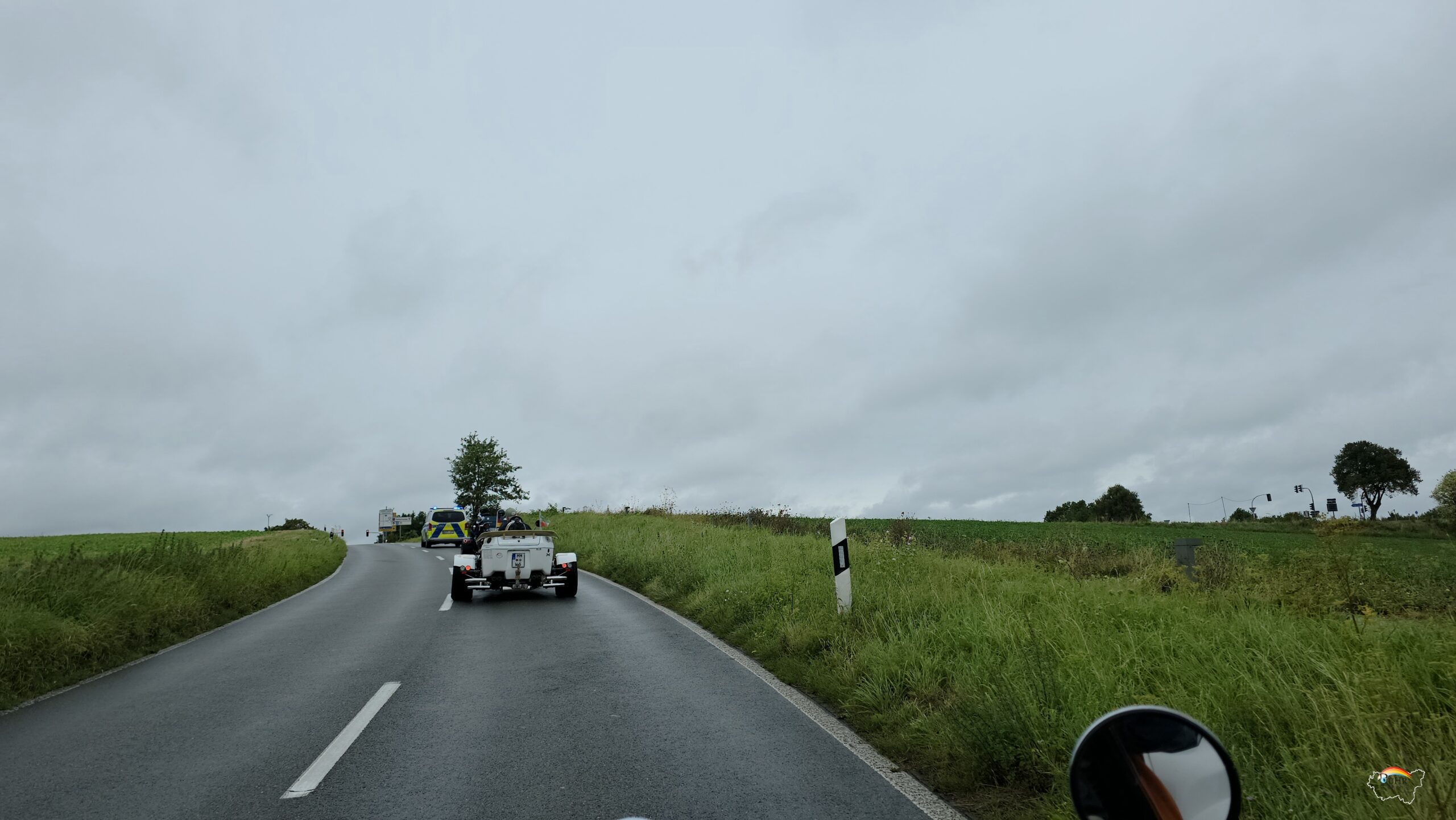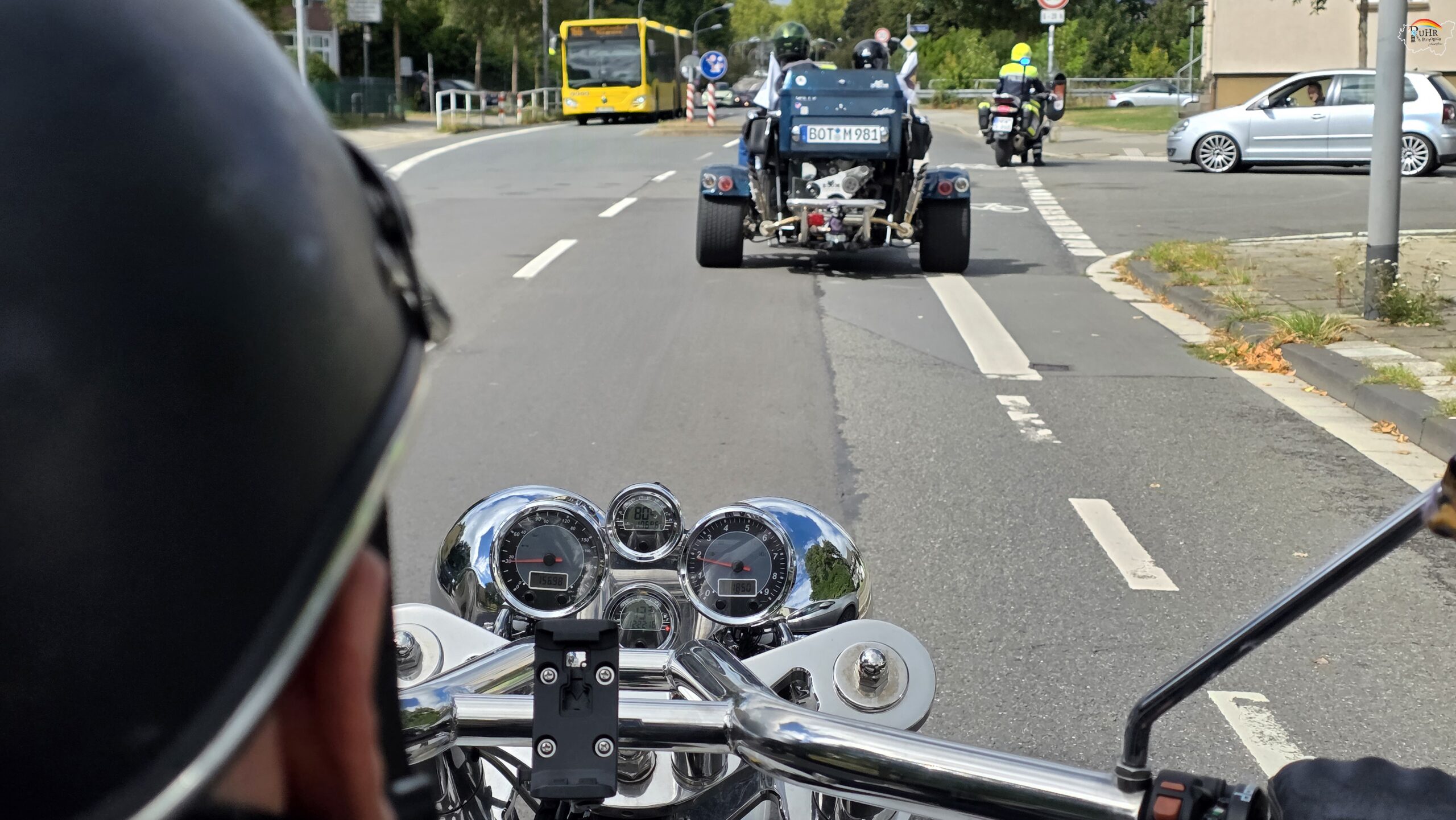 Apropos Straße: Vom Straßenverkehrsamt wurde wochenlang geprüft, ob die von Markus vorgeschlagene Strecke befahrbar ist und abgesperrt werden kann in dem Zeitraum der Fahrt. Alles muss akribisch geplant werden, damit der Verkehr nicht zum Erliegen kommt für die wenigen Minuten, die der Tross von Trikes und Teilnehmern, an Baustellen und Kreuzungen vorbeidüsen.