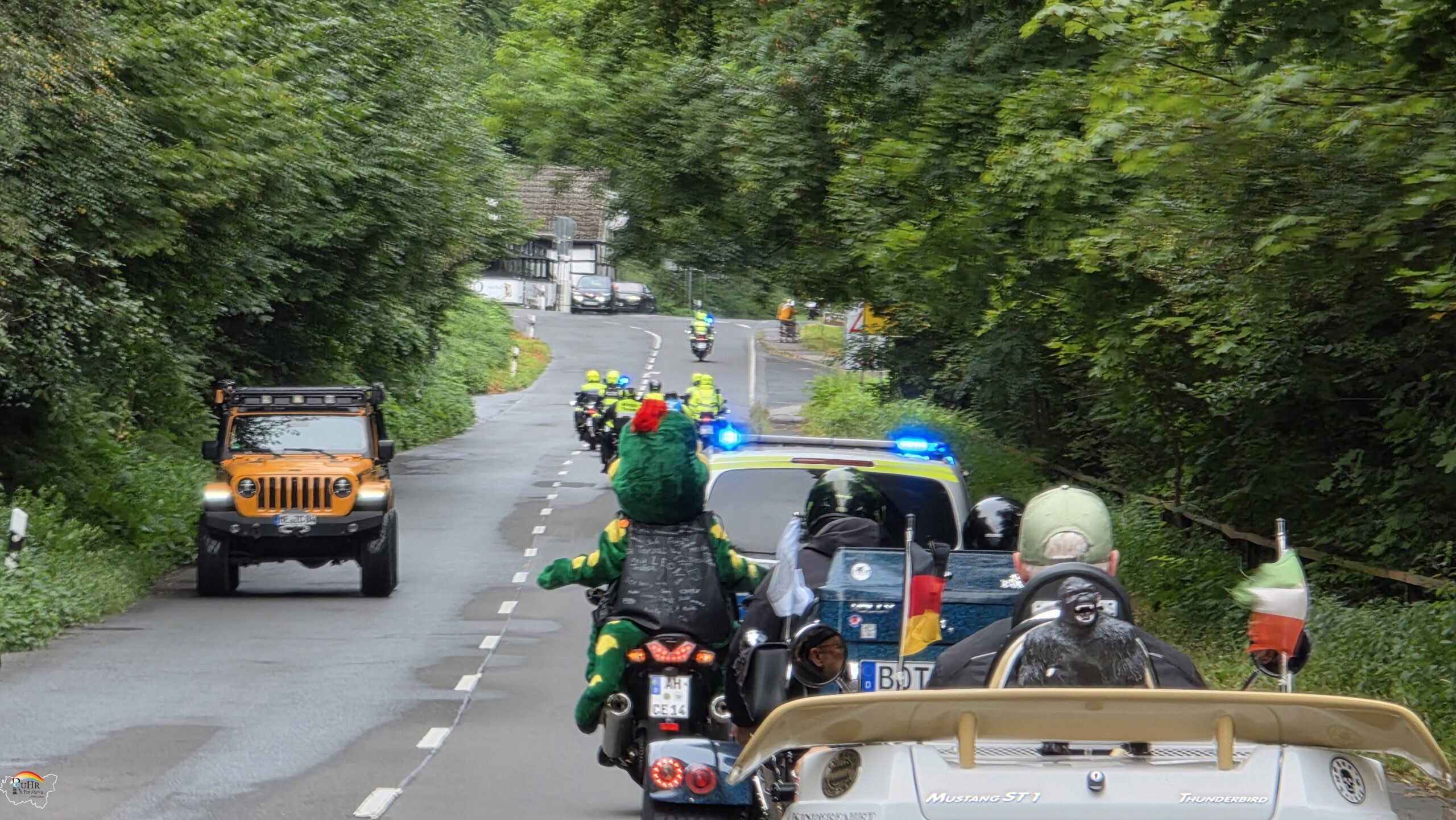 Die Fahrt wird durchgeführt gemeinsam von hilfsbereiten Trikern, Motorradfahrern aus dem Umkreis von 200 km und der örtlichen Polizei.