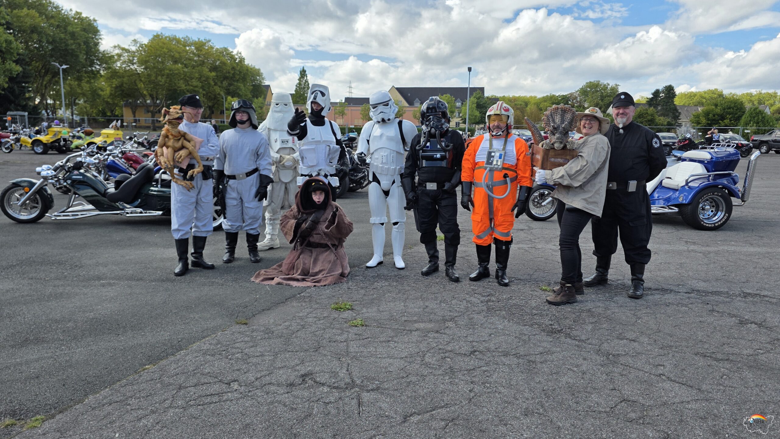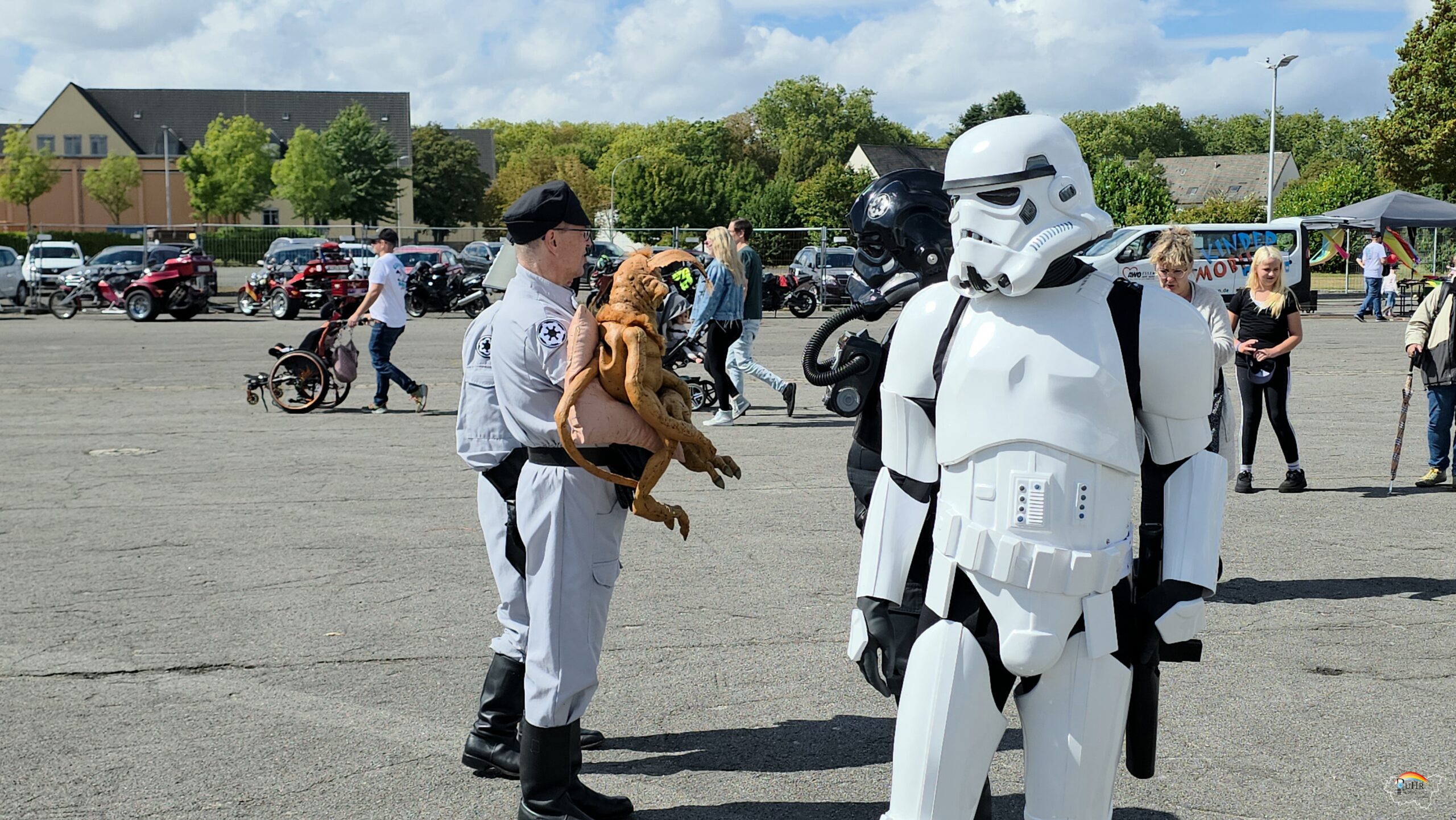 Drei Jahre später wurde mit der German Garrison der deutsche Ableger der Legion ins Leben gerufen und der größte Star-Wars-Kostümclub mittlerweile deutschlandweit. Hauptsächlich werden dunkle Charaktere dargestellt. Sie können gebucht werden für Events wie die Kinderfahrt. Und sie machen das seit Jahren voller Freude und gern, auch wenn Hitze den Schweiß in den Kostümen staut.