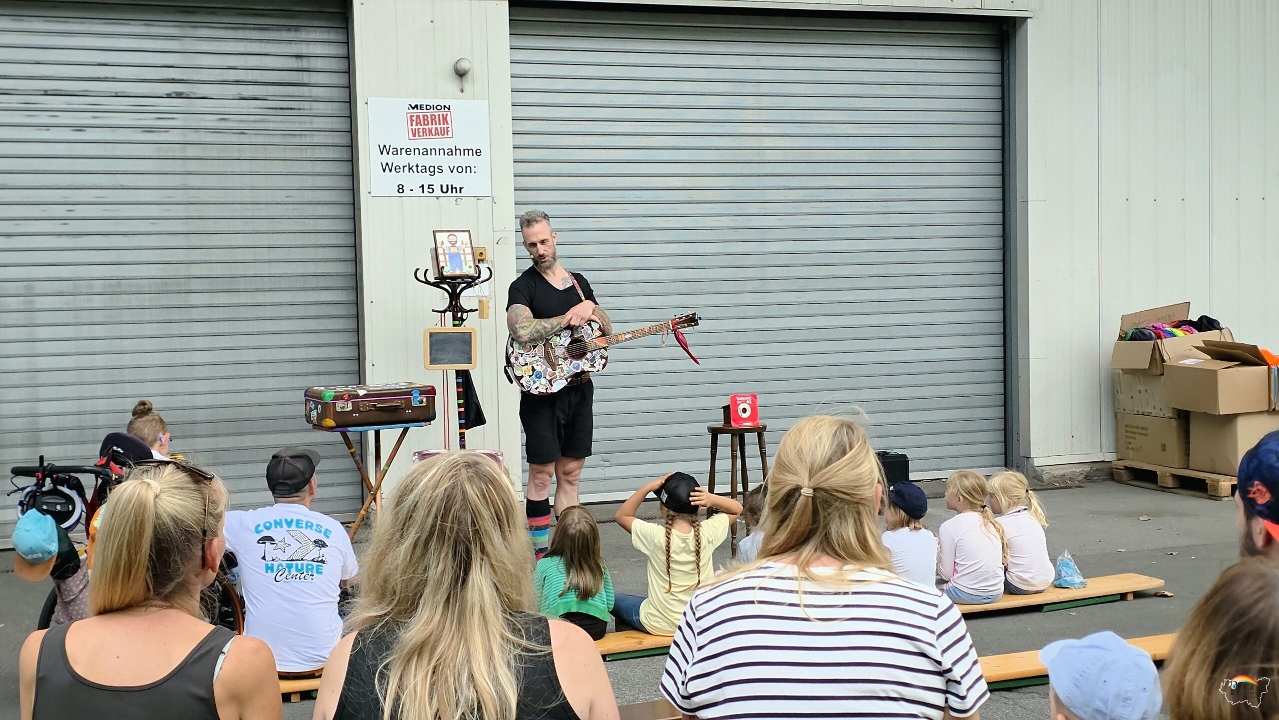 Nach der Pause gab es dann Sonnenschein. Und am Ende auf dem Gelände von Medion wurde sich gestärkt. Kinder haben gespielt, dem Zauberer applaudiert und der Polizeipräsident hat fleißig den Kindern Caps verschenkt.