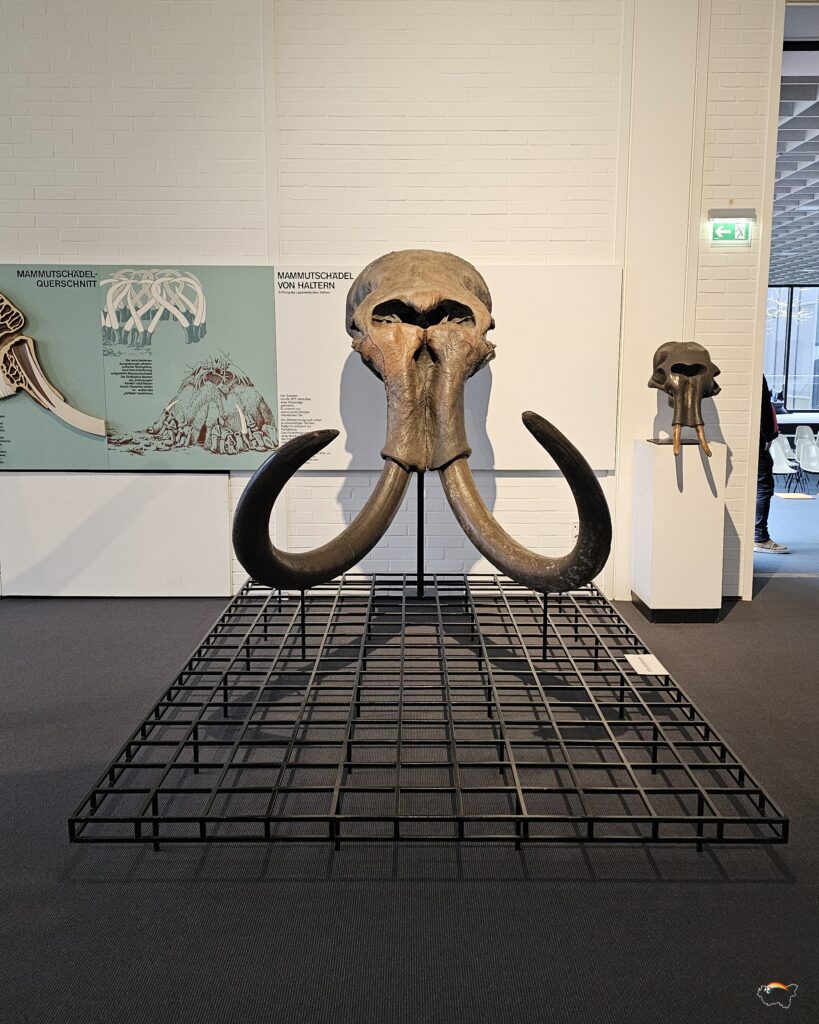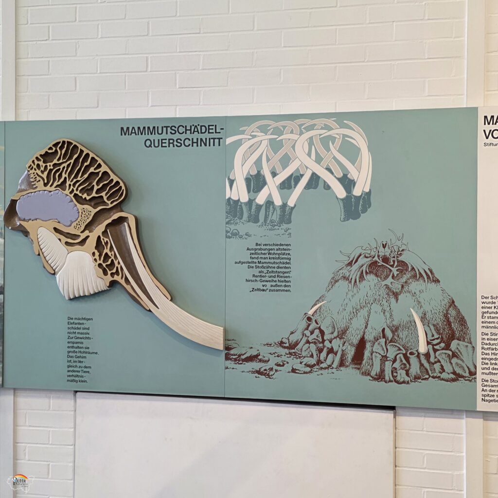 Umso beeindruckender ist es den Schädel dort an der Wand hängen zu sehen, genauso wie es fast einschüchternd ist neben dem Mammutskelett in der Museumshalle zu stehen. Was mich schon als Kind fasziniert hat, wie riesig sie waren. Und wie Menschen damals schon es schafften mit fortschrittlichen Jagdwaffen diese großen Tiere zu erlegen.