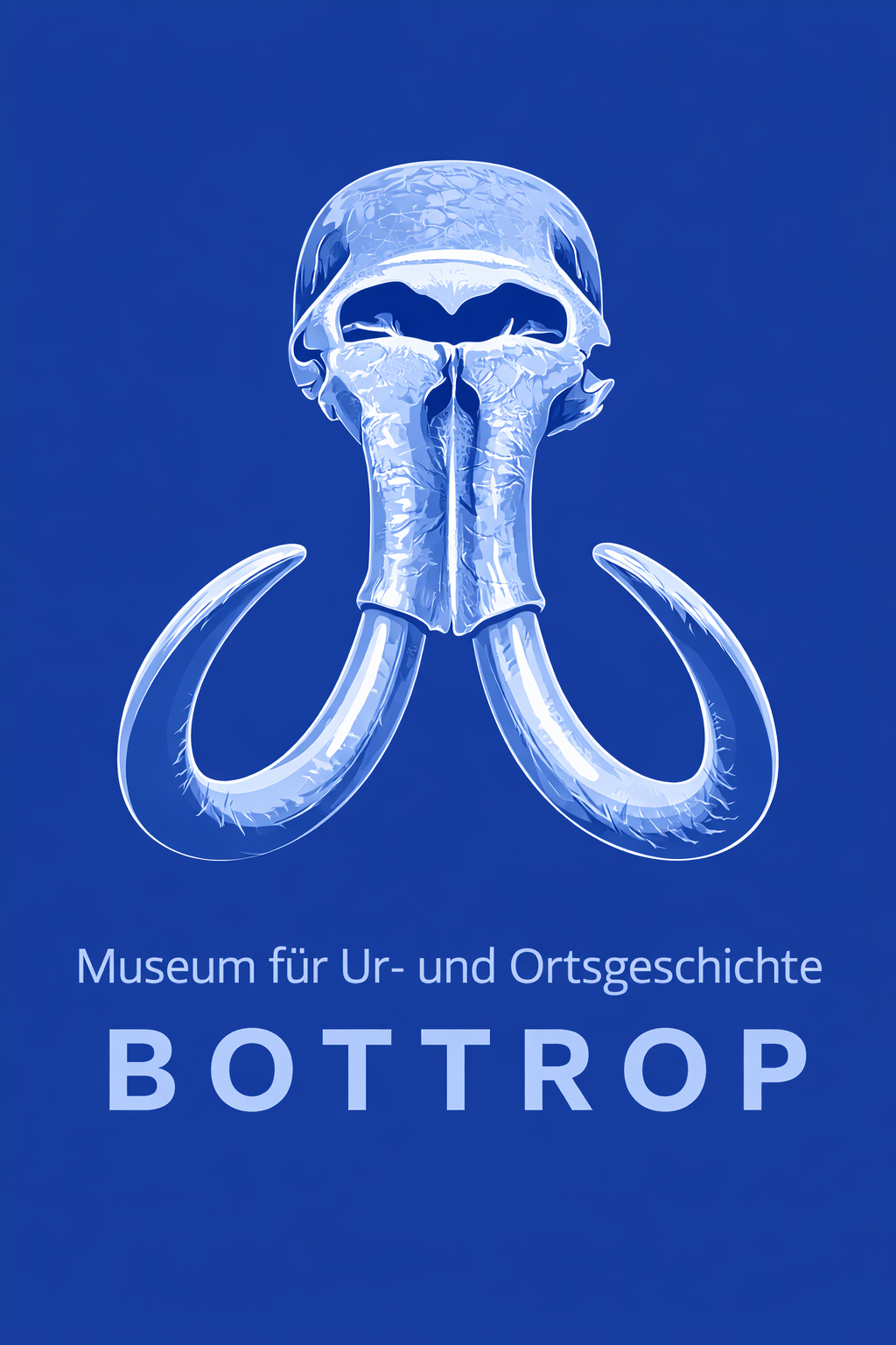 Ein gut erhaltener Mammutschädel ist eine Seltenheit. Ich hab aus meinem Besucherfoto im Bottroper Eiszeitmuseumsbereich mit der KI eine Postkarte mit diesem besonderen Mammutschädel kreiert. Die blaue Farbe stammt aus dem Bottroper Stadtwappenfarben mit denen ich spiele und damit lasse ich eine Sehenswürdigkeit der Stadt herausstechen. Mal mit mehr abstrakter Illustration, mal mit mehr Detailnähe. Der Mammutschädel gehört detailliert dargestellt, weil er einer der wichtigsten Funde in ganz Deutschland ist.
